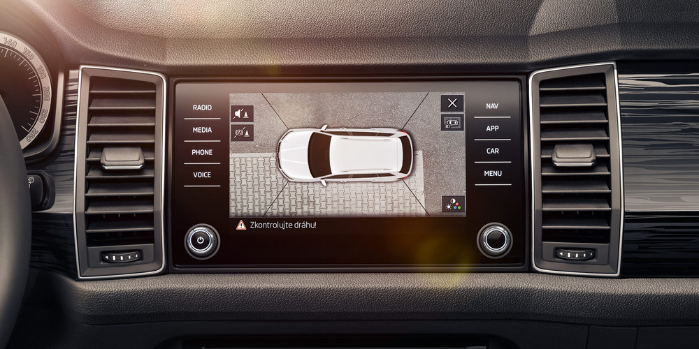 Area View Chcete přesně vědět, co se děje v okolí auta? Systém Area View přenáší na palubní displej záběry z několika různých úhlů zachycené širokoúhlými kamerami v předním i zadním nárazníku a v krytech zrcátek |