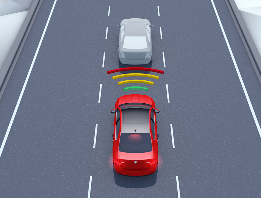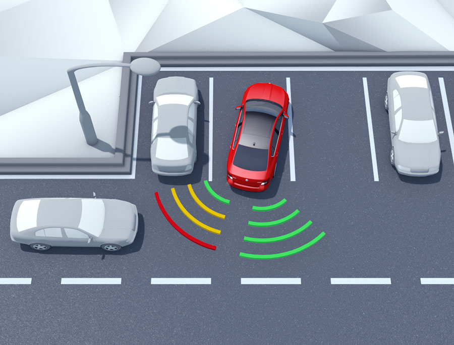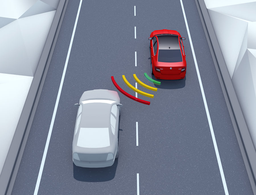 Rear Traffic Alert Při vycouvávání z parkovacího místa rozpozná Rear Traffic Alert vozidla blížící se ze stran. Akustický signál varuje před hrozící kolizí. Kromě toho se „kritická strana“ ze které se jiný vůz blíží, zobrazí na displeji infotainmentu nejdříve ve žluté a potom v červené barvě. V případě potřeby jsou automaticky aktivovány brzdy. |