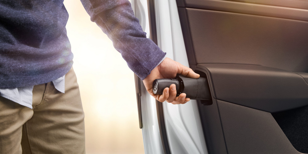 Držák na deštník Vy i váš spolujezdec zůstanete v suchu. Deštníky ve speciálních schránkách najdete v obou předních dveřích. Jsou vyrobeny z voděodolného materiálu a navrženy tak, že vlhkost odteče mimo vůz |