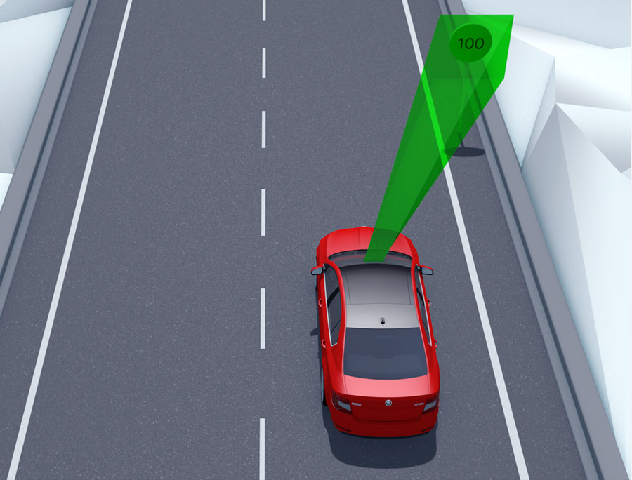 Travel Assist Modul pro zpracování obrázků vyhledává na naskenovaných snímcích známé dopravní značky a srovnává výsledky s daty z navigace. Systém zpracovává značky omezení rychlosti (například „80 km/h“), zákazy předjíždění a všechny doplňkové tabulky (například „22:00 – 06:00“ nebo „zákaz předjíždění pro pomalá vozidla“) a s nimi spojená označení zúžených úseků. Všechny tyto informace jsou zobrazovány na multifunkčním displeji a/nebo v navigačním systému. |