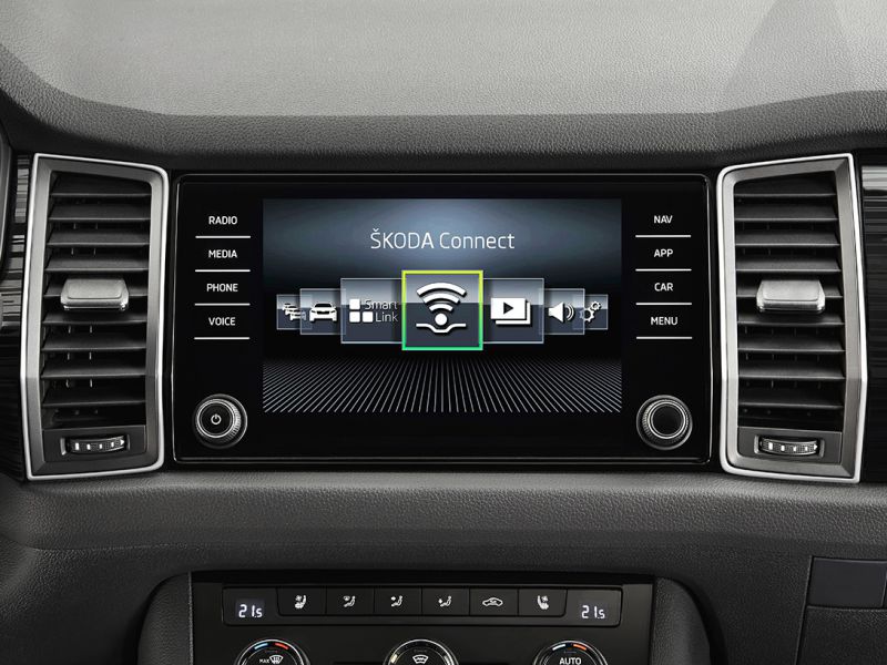 Konektivita nového modelu Kodiaq s celou řadou mobilních zařízení a aplikací představuje špičku ve své třídě. ŠKODA Connect je zcela novým prvkem konektivity vozů ŠKODA. Všechny informace jsou zobrazovány na 6,5” nebo 8” displejích se skleněným designem.