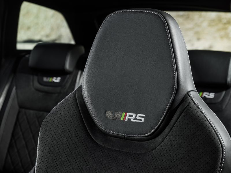 Interiér nového vozu ŠKODA Octavia RS je proveden ve sportovní černé barvě. Přední dveře jsou vybaveny zabudovaným osvětlením, které váš zrak navede na kličky dveří. Sedadla řidiče a spolujezdce byla vytvořena v RS designu. Součástí výbavy je tříramenný sportovní volant potažený perforovanou kůží. Řadicí páka a ruční brzda jsou rovněž potaženy kůží, zatímco prahové lišty a kryty pedálů jsou z nerezové oceli. Součástí sdruženého panelu přístrojů je i barevný displej Maxi DOT. Volant, řadicí páka, prahové lišty i sedadla zdobí logo RS.