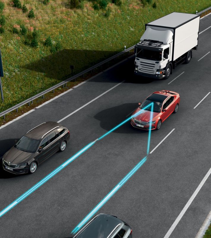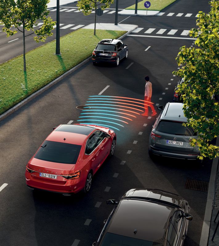 Při blížící se srážce aktivuje brzdy s cílem minimalizovat její následky. Současně provádí nouzové zastavení, pokud se chodec snaží nebezpečně přejít před vozidlem.